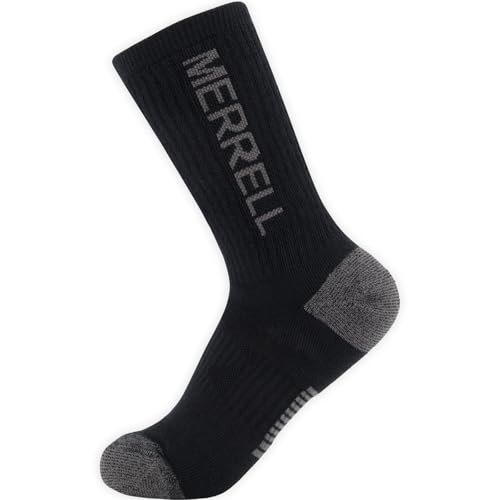 Merrell Moab Hiking Crew Socks, Mid-Weight, Breathable Socks, Cushioning & Arch Support, Black, Small-Medium