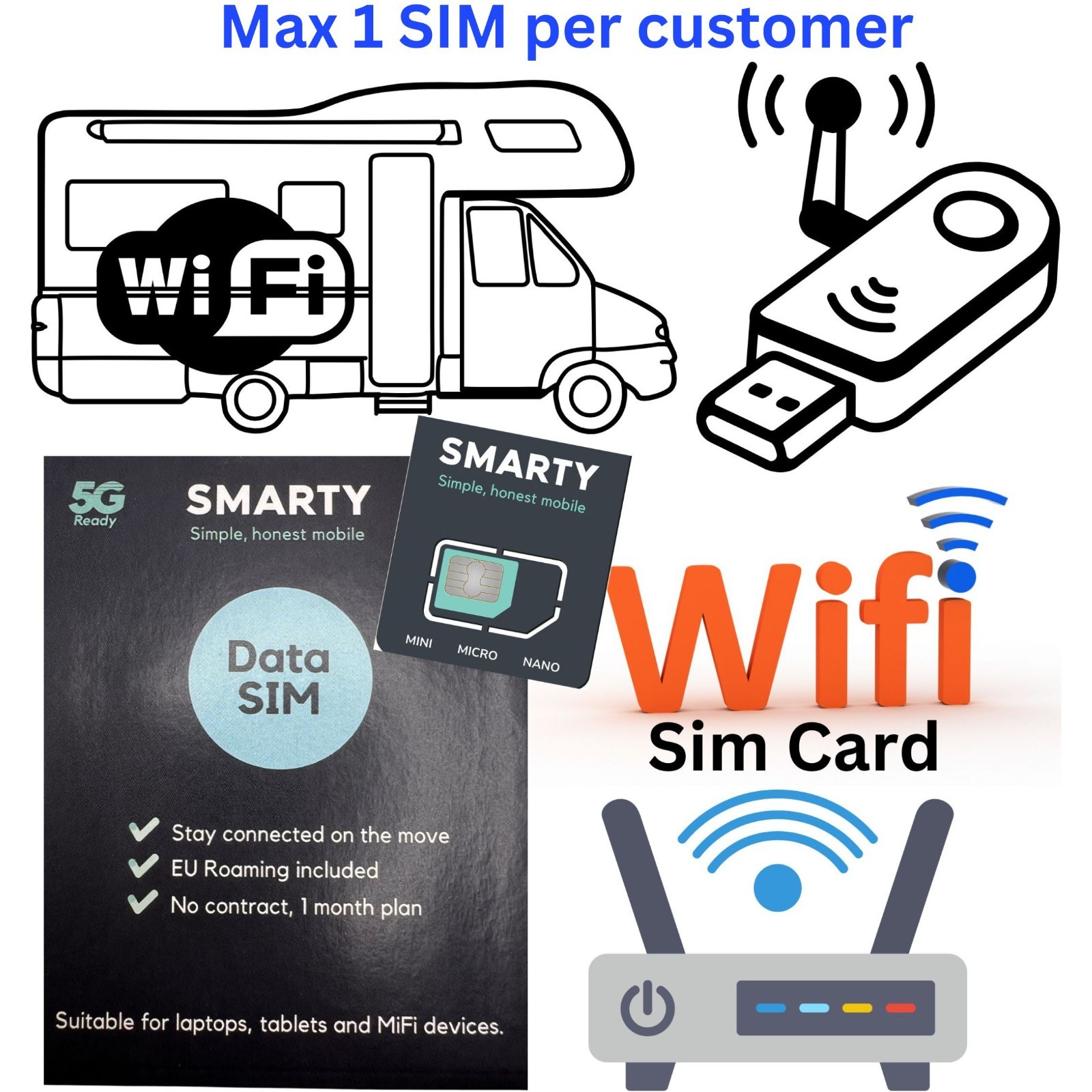 1 x New SMARTY DATA SIM CARD FOR WiFi Router-Dongle campervan MiFi Hotspot 4G 5G