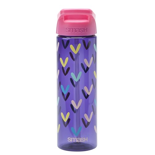 Smash Hearts Water Bottle with Straw 700m, Purple