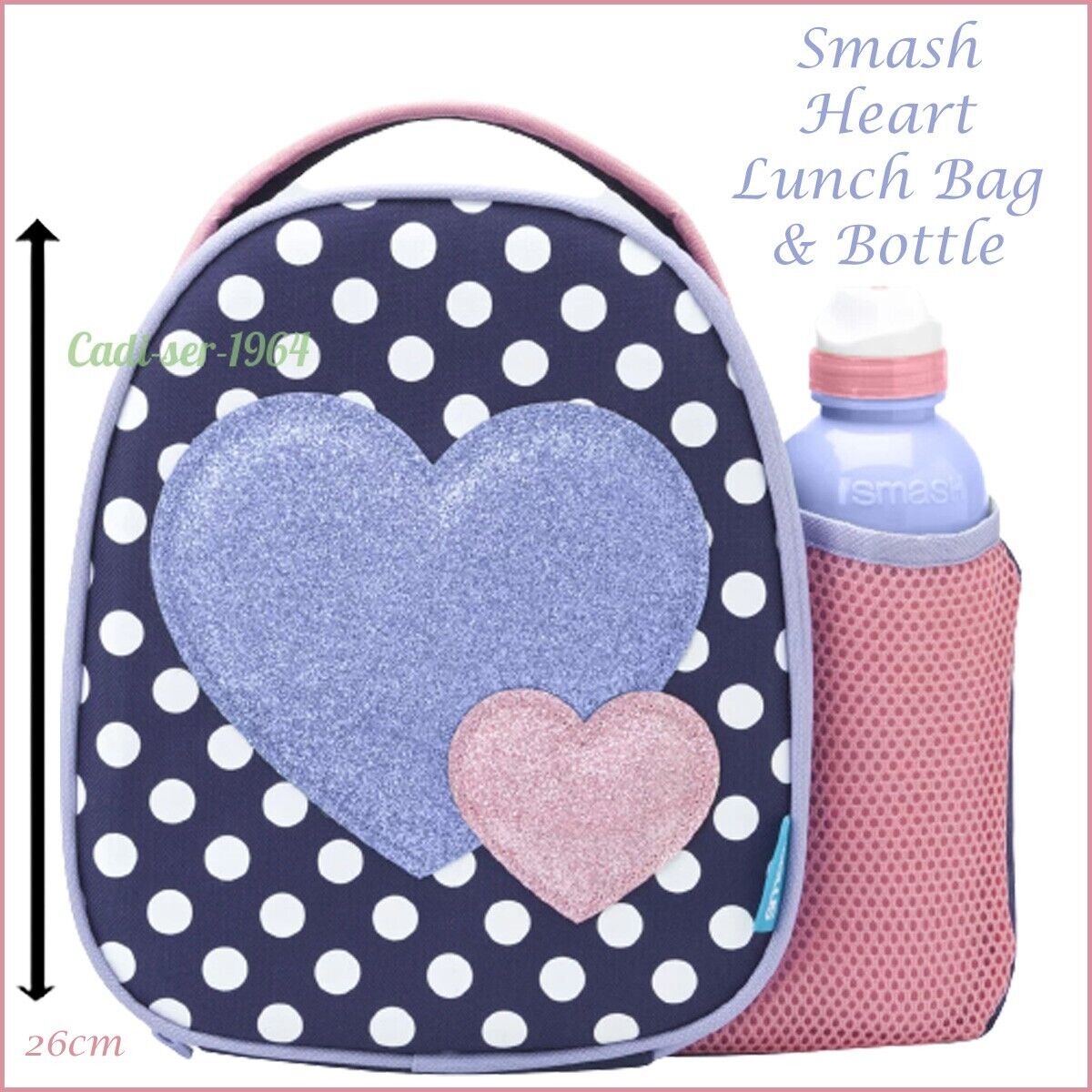 Smash Lunch Bag and Bottle Purple & Pink Heart NEW School Lunch Bag