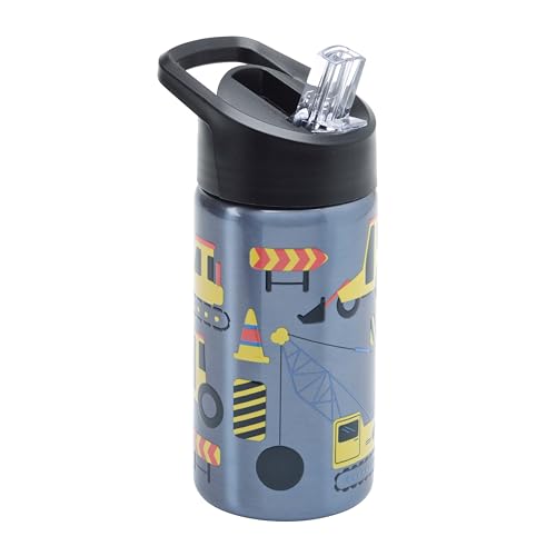 Smash Stainless Steel Drink Bottle with Flip Top Lid and Straw - Digger 500ml, Blue