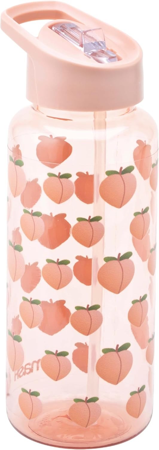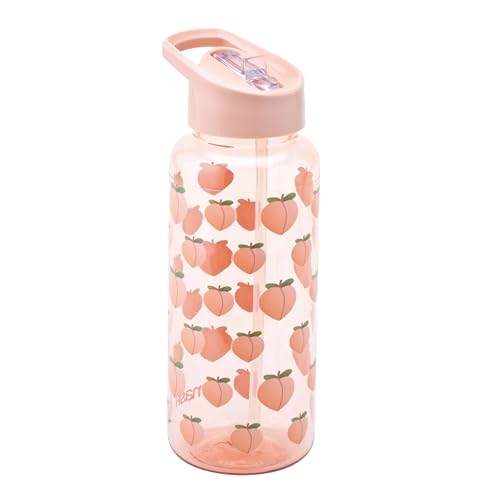 Smash 1 Litre Drink Bottle with flip top lid and straw - Peach design