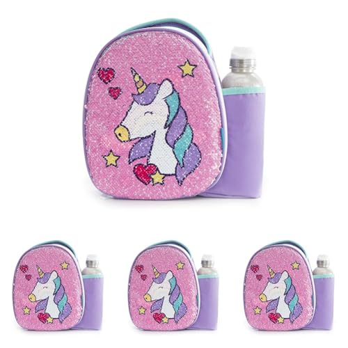 Smash 22841 Insulated, Polyester, 500 milliliters, Reverse Sequin Unicorn Lunch Bag and 500ml Bottle,8.5cm x 25.5cm x 25cm (Pack of 4)