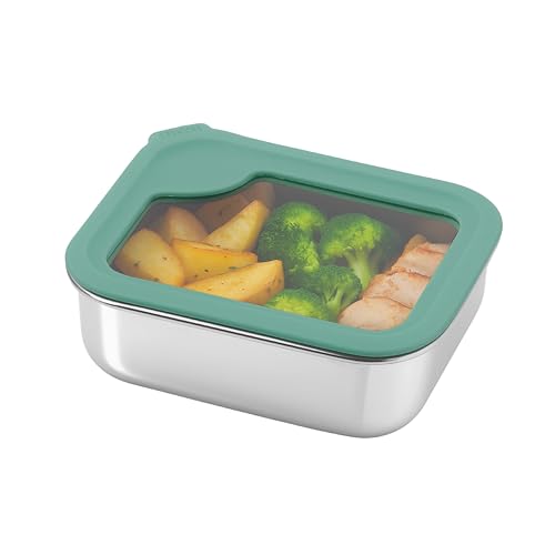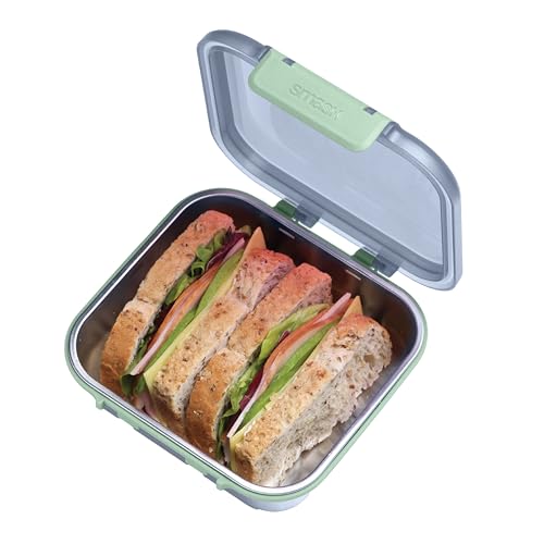 Smash 900ml /30 oz Microwave Safe Stainless Steel Meal/Sandwich/Lunch Box with Green Hinged Lid – Leak-Proof Clip Closure, Silicone Seal, BPA-Free