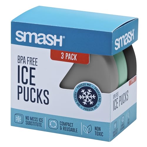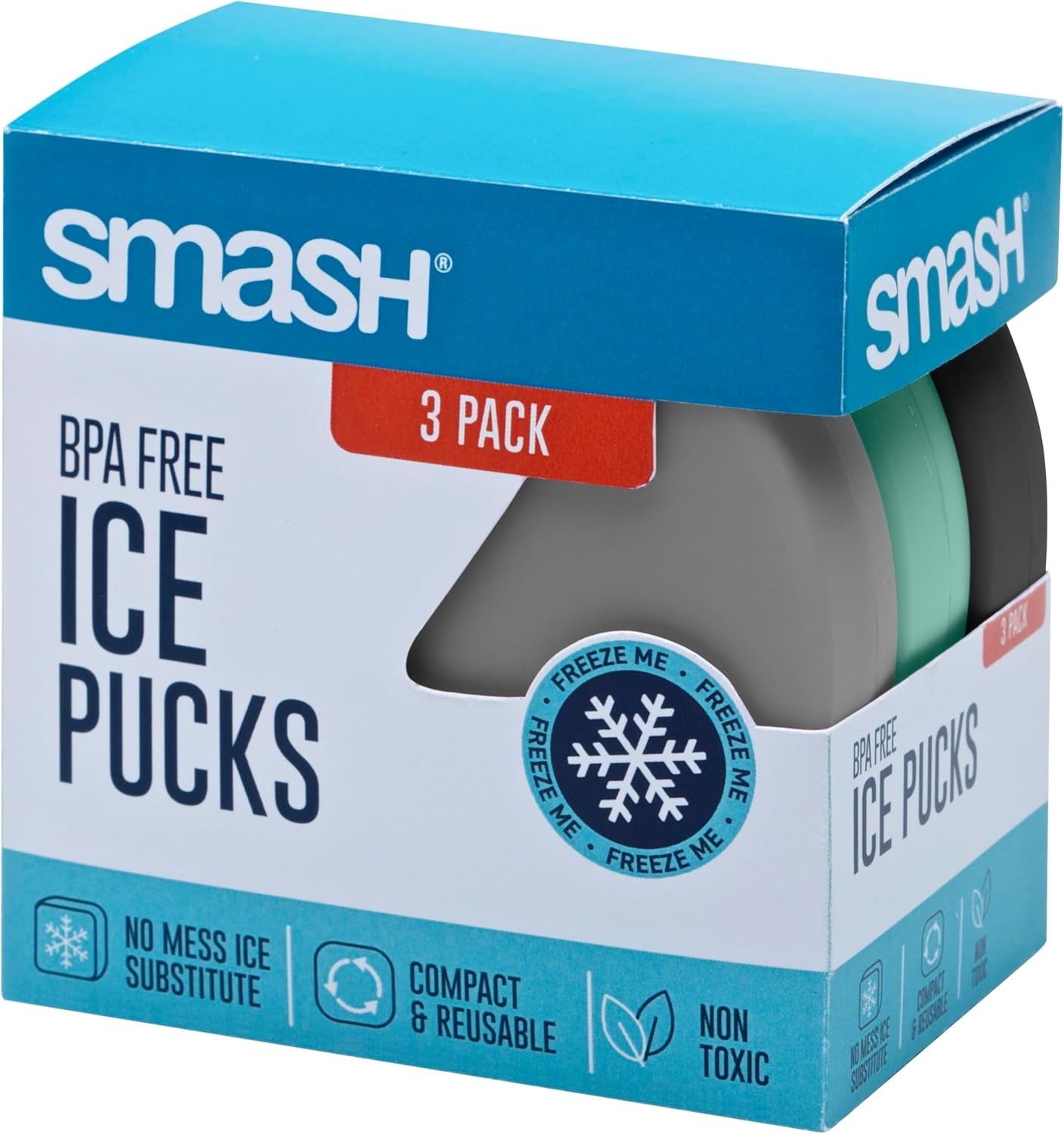 SMASH Ice Pucks - Freezer Ice Blocks Reusable Cool Bag Lunch Box - 3 pack