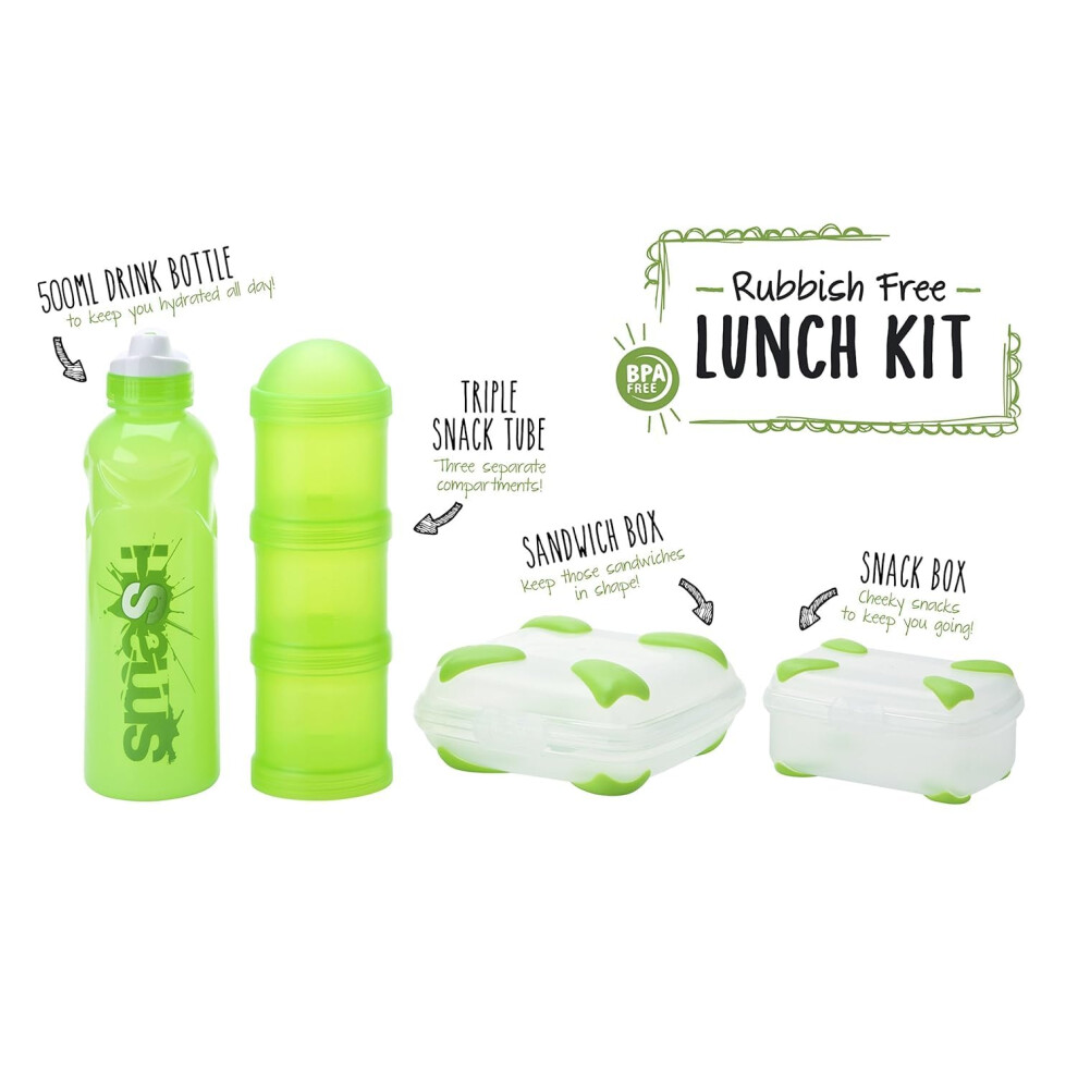 Nude Food Movers by Smash Rubbish Free Lunch Kit with Sandwich Box Snack Box Stealth Water Bottle & Triple Snack Tube Pink