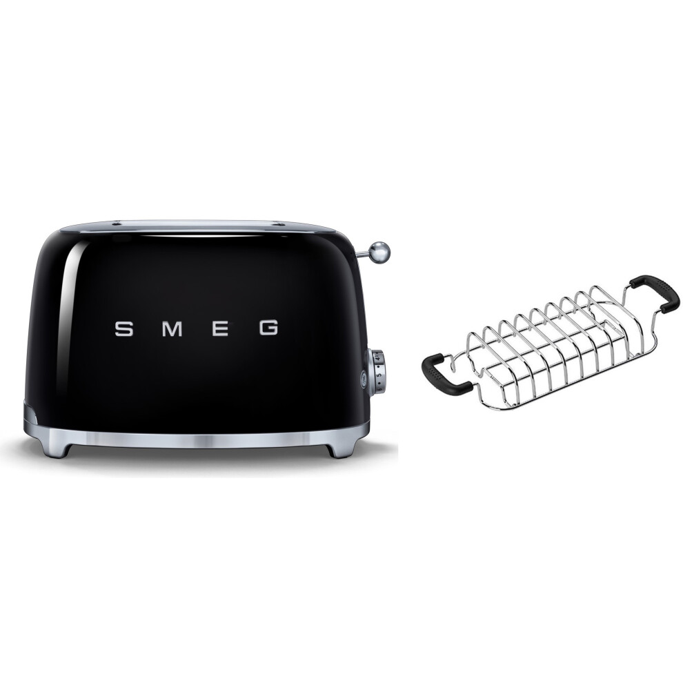 (Black) Smeg TSF01 2 Slice Toaster + TSSR01 2-Sandwich Racks Bundle