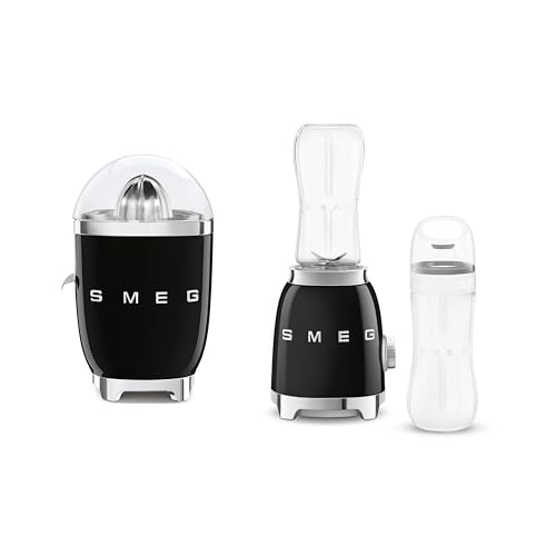 Smeg Blender and Juicer Set, Compact Personal Blender and Citrus Juicer, Black, CJF11BLUK and PBF01BLUK