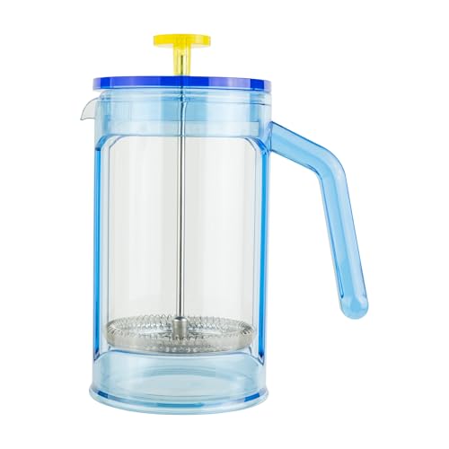 Café Olé Chiaro Cafetière, Blue & Yellow, 1000ml / 4-5 Mugs / 8 Espresso Cups, French Press Coffee Maker, Stainless Steel Meach Filter, Glass Beaker, Acrylic Body and Handle