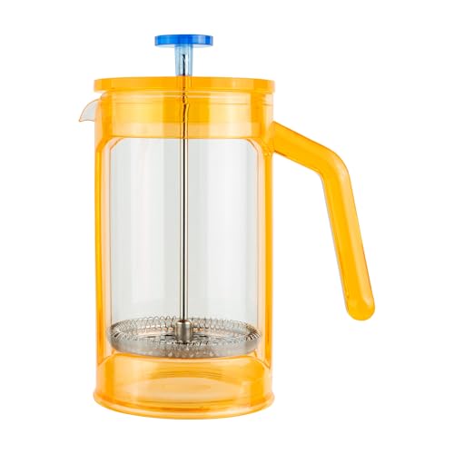 Café Olé Chiaro Cafetière, Orange & Blue, 1000ml / 4-5 Mugs / 5 Espresso Cups, French Press Coffee Maker, Stainless Steel Mesh Filter, Glass Beaker, Acrylic Body and Handle