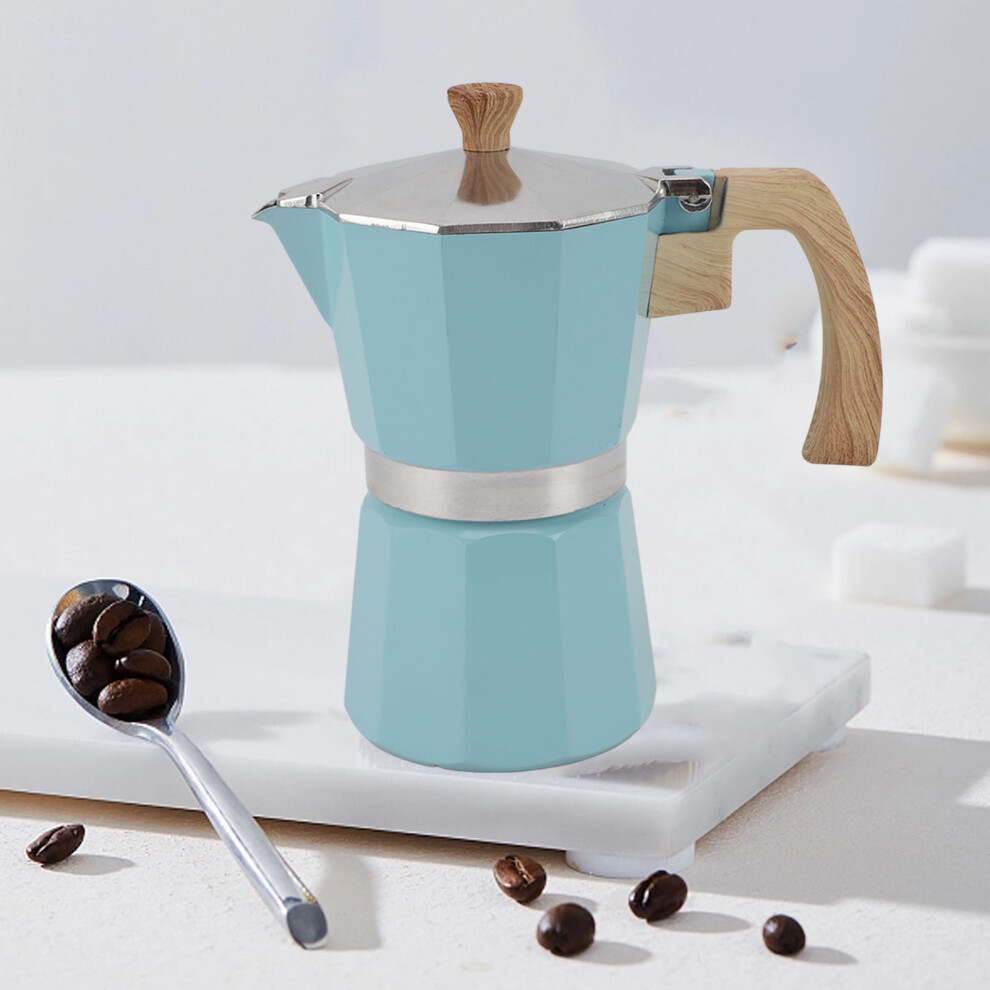 300ML Coffee Pot Moka Maker Coffee Kettle for Gas Stove Ethanol Stove Electrothermal FurnaceCyan Blue