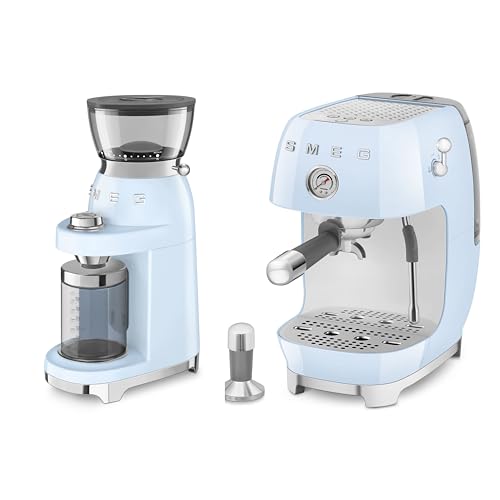 Smeg 50s Style Espresso Coffee Machine and 50's Style Electric Coffee Grinder Pastel Blue CGF03PBUK / ECF02PBUK