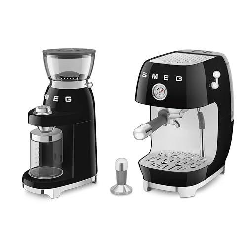 Smeg 50s Style Espresso Coffee Machine and 50's Style Electric Coffee Grinder Black CGF03BLUK / ECF02BLUK
