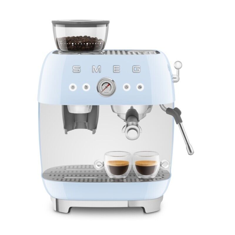 Smeg Espresso Coffee Machine With Grinder in Pastel Blue