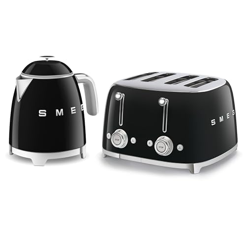 Smeg 50’s Style Retro Range Breakfast Set, 0.8L 1400W Mini Kettle and Multi-Functional Control 4-Slice 2000W Toaster, Black, KLF05BLUK/ TSF03BLUK