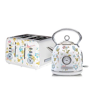 Laura Ashley 1.7L Dome Kettle and 4 Slice Toaster Elveden White