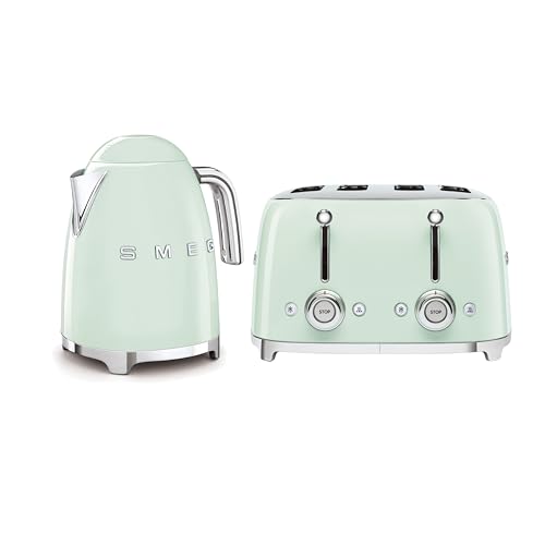 Smeg 50’s Style Retro Range Breakfast Set, 1.7L 3000W Kettle and Multi-Functional Control 4-Slice 2000W Toaster, Pastel Green, KLF03PGUK/ TSF03PGUK