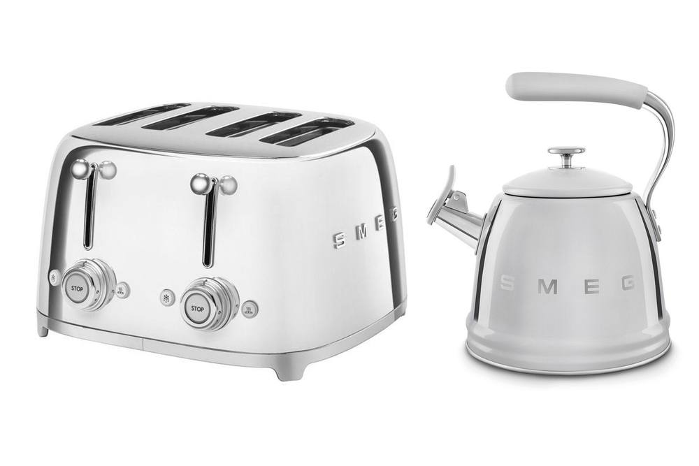 Smeg Kettle and 50's 4 by 4 Slice Toaster Stainless Steel Set