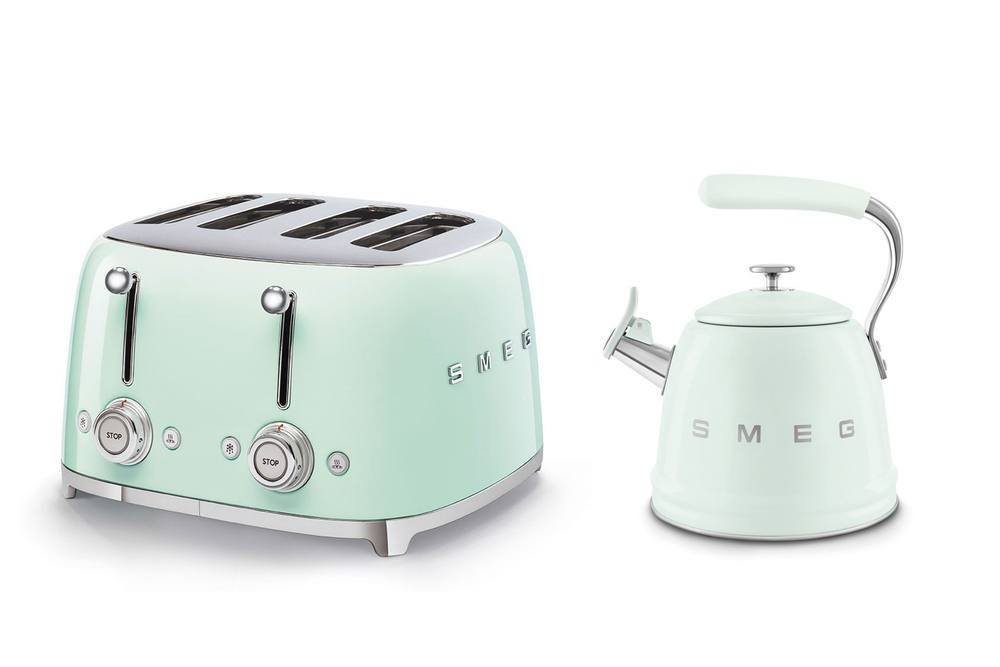 Smeg Kettle and 50's 4 by 4 Slice Toaster Pastel Green Set