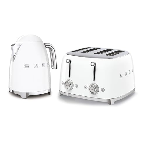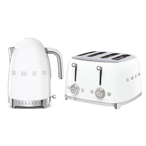 Smeg 50’s Style Retro Range Breakfast Set, 1.7L 3000W Kettle and Multi-Functional Control 4-Slice 2000W Toaster, White, KLF03WHUK/ TSF03WHUK