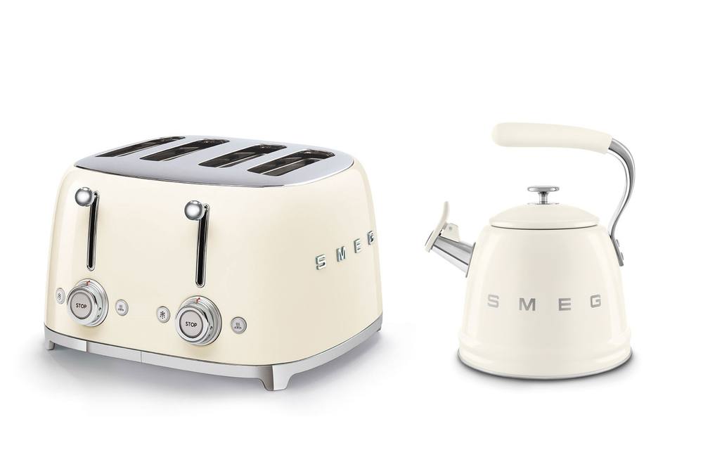 Smeg Kettle and 50's 4 by 4 Slice Toaster Cream Set
