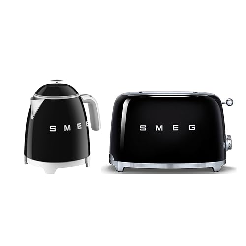 Smeg 50’s Style Retro Range Breakfast Set, 0.8L 1400W Mini Kettle and Multi-Functional Control 2-Slice 950W Toaster, Black, KLF05BLUK/ TSF01BLUK