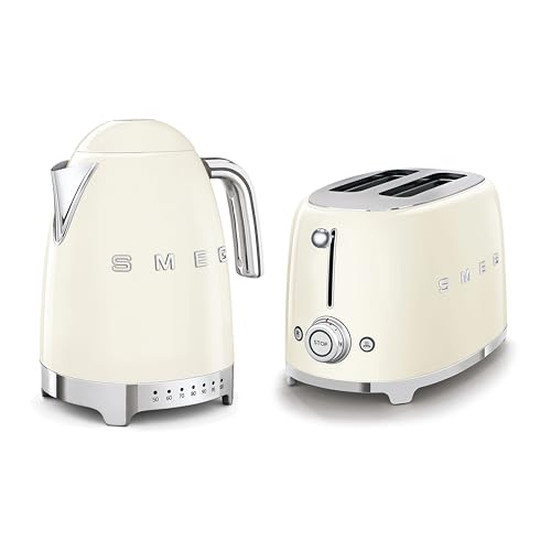 Smeg 50’s Style Retro Range Breakfast Set, 1.7L 3000W Variable Temperature Kettle and Multi-Functional Control 2-Slice 950W Toaster, Cream, KLF04CRUK/ TSF01CRUK