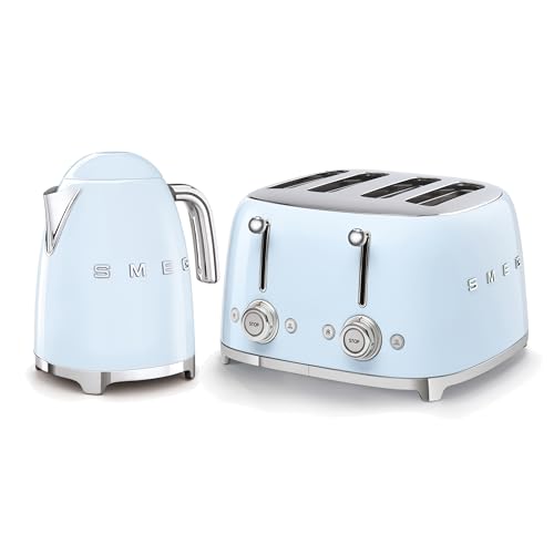 Smeg 50’s Style Retro Range Breakfast Set, 1.7L 3000W Kettle and Multi-Functional Control 4-Slice 2000W Toaster, Pastel Blue, KLF03PBUK/ TSF03PBUK