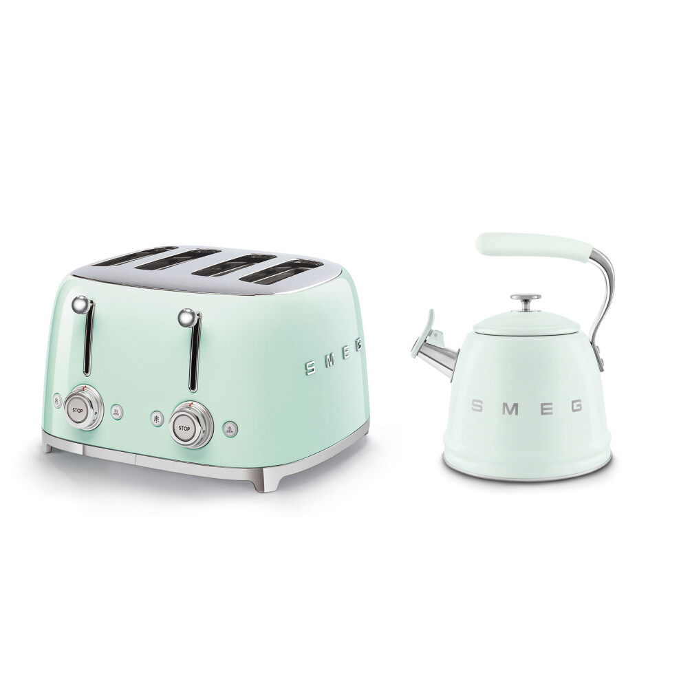 (Pastel Green) Smeg WKF01 Whistling Stovetop Kettle & TSF03 4-Slice Toaster Bundle