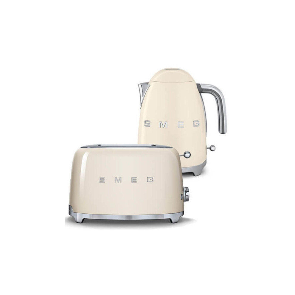 Smeg Kettle Jug & 2-slice Toaster Set 1.5L 3Kw , Stainless Steel in Cream