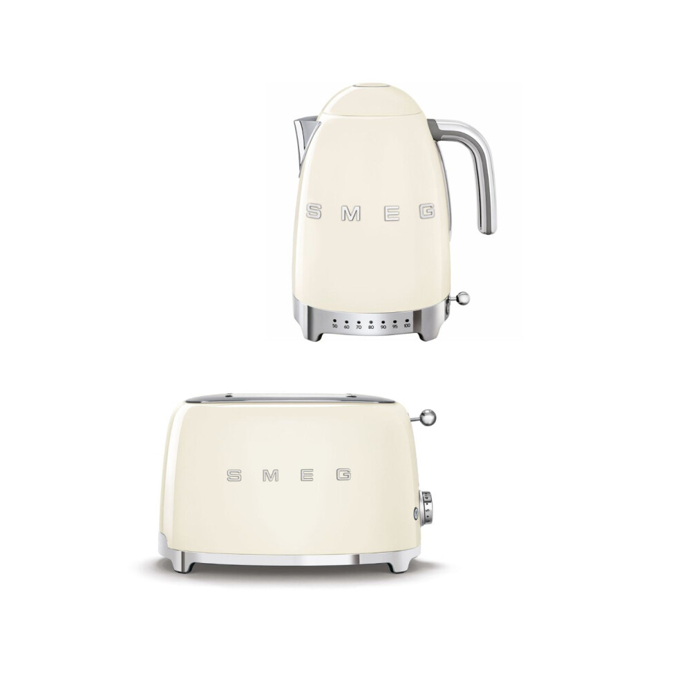 Smeg 50's Style Retro Range Breakfast Set, Variable Temperature Kettle & Multi-Functional Control 2-Slice 950W Toaster, Cream, KLF04CRUK/ TSF01CRUK
