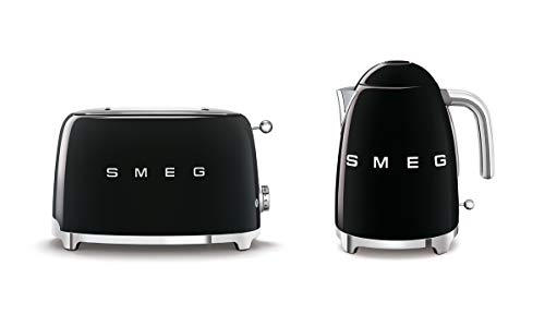 Smeg 50’s Style Retro Range Breakfast Set, 1.7L 3000W Kettle and Multi-Functional Control 2-Slice 950W Toaster, Matte Black, KLF03BLMUK/ TSF01BLMUK