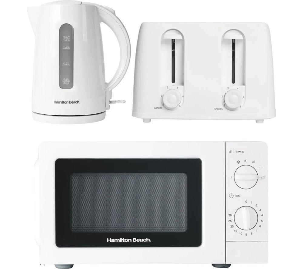 HAMILTON BEACH Essentials Jug Kettle, 4-Slice Toaster & Solo Microwave Bundle - White, White