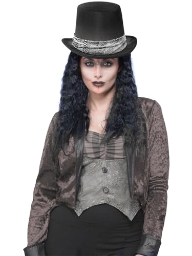 Smiffys Gothic Rocker Top Hat, with Hair, Halloween Fancy Dress Accessory, Voodoo Woman Dress Up Hats