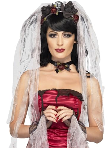 Smiffys Gothic Bride Kit, Black with Rose & Skull Veil, Choker & Gloves, Halloween Fancy Dress Accessory, Halloween Fancy Dress Accessories Dress Up Accessories