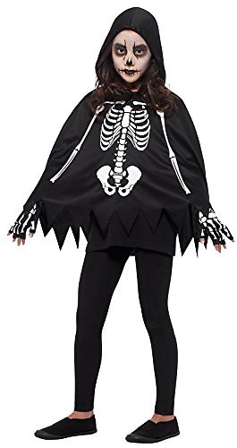 Smiffys Skeleton Kit, Black & White with Poncho & Gloves, Halloween Child Fancy Dress, Skeleton Dress Up Accessories