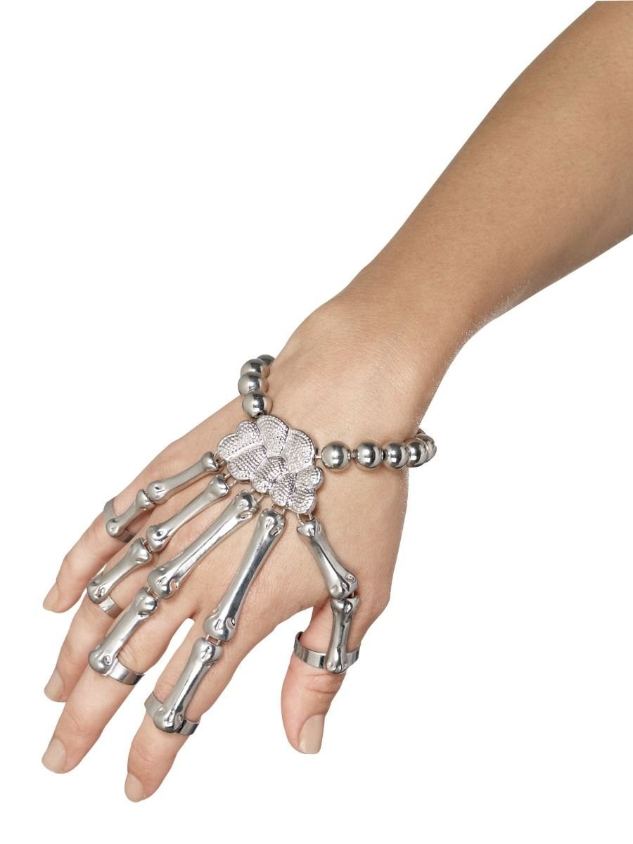 Smiffys Skeleton Hand Bracelet, Silver , Mexican Day of The Dead/Sugar Fancy Dress, Skeleton Dress Up Jewellery