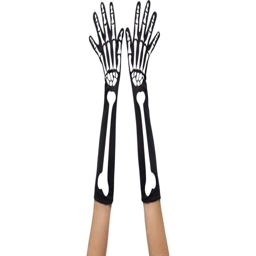 Smiffys Skeleton Gloves, Black Long, Halloween Fancy Dress Accessory, Skeleton Dress Up Accessories Halloween