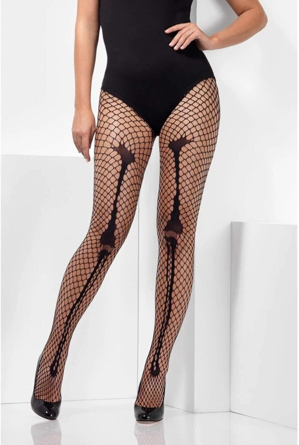 Smiffys Skeleton Bone Net Tights, Black, Fever Hosiery Fancy Dress, Skeleton Dress Up Accessories, World Book Day