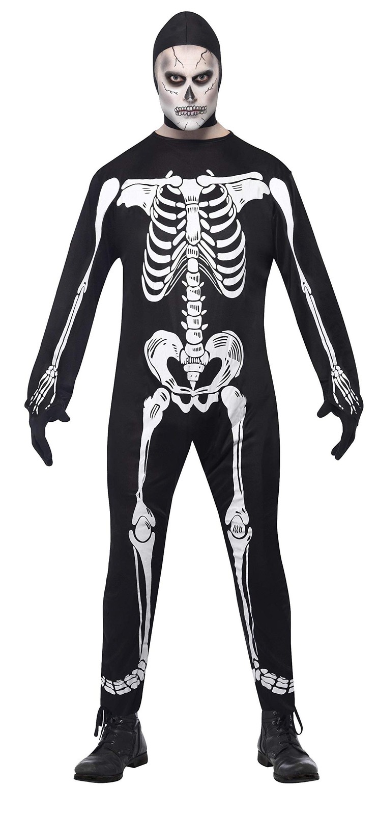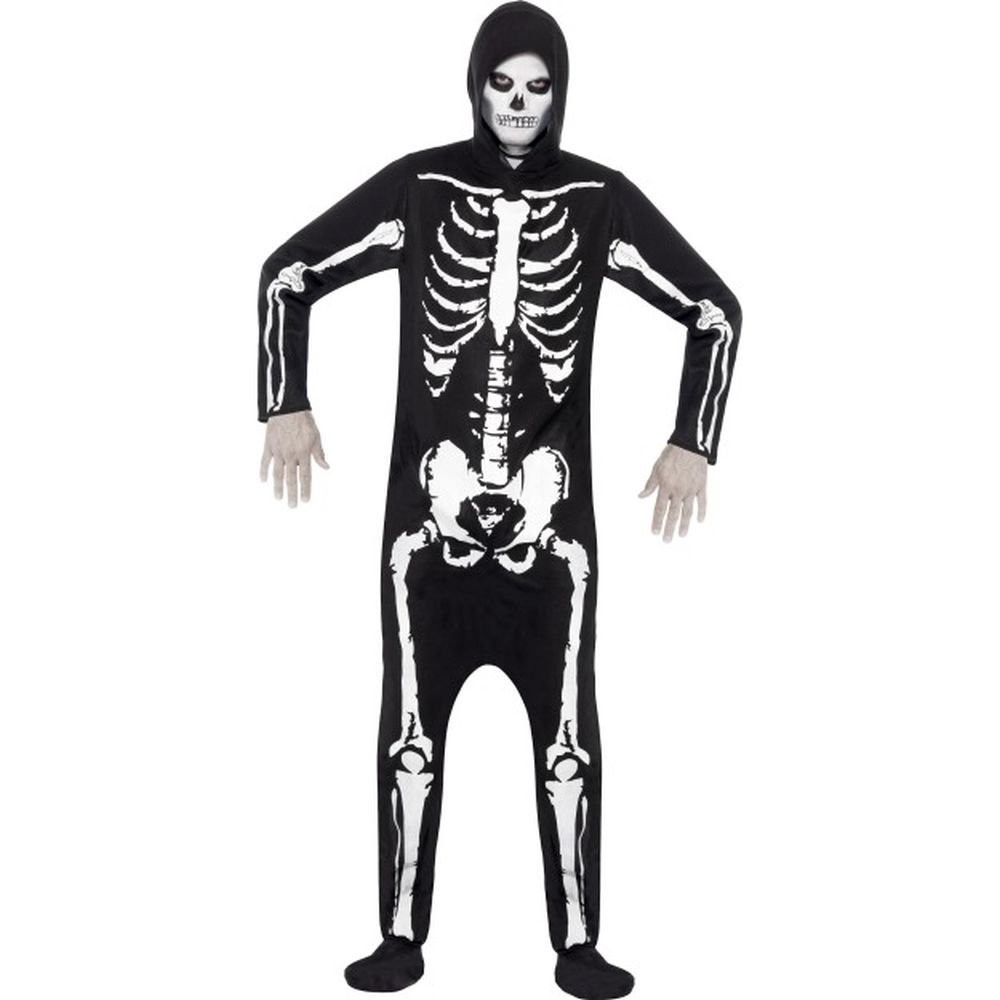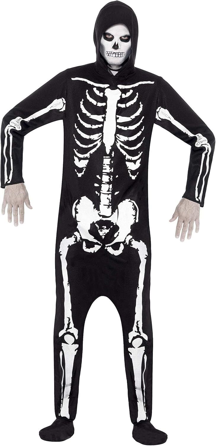 Smiffys Skeleton Costume, Black with Jumpsuit, Hood & Gloves, Halloween Adult Fancy Dress, Skeleton Dress Up Costumes, World Book Day