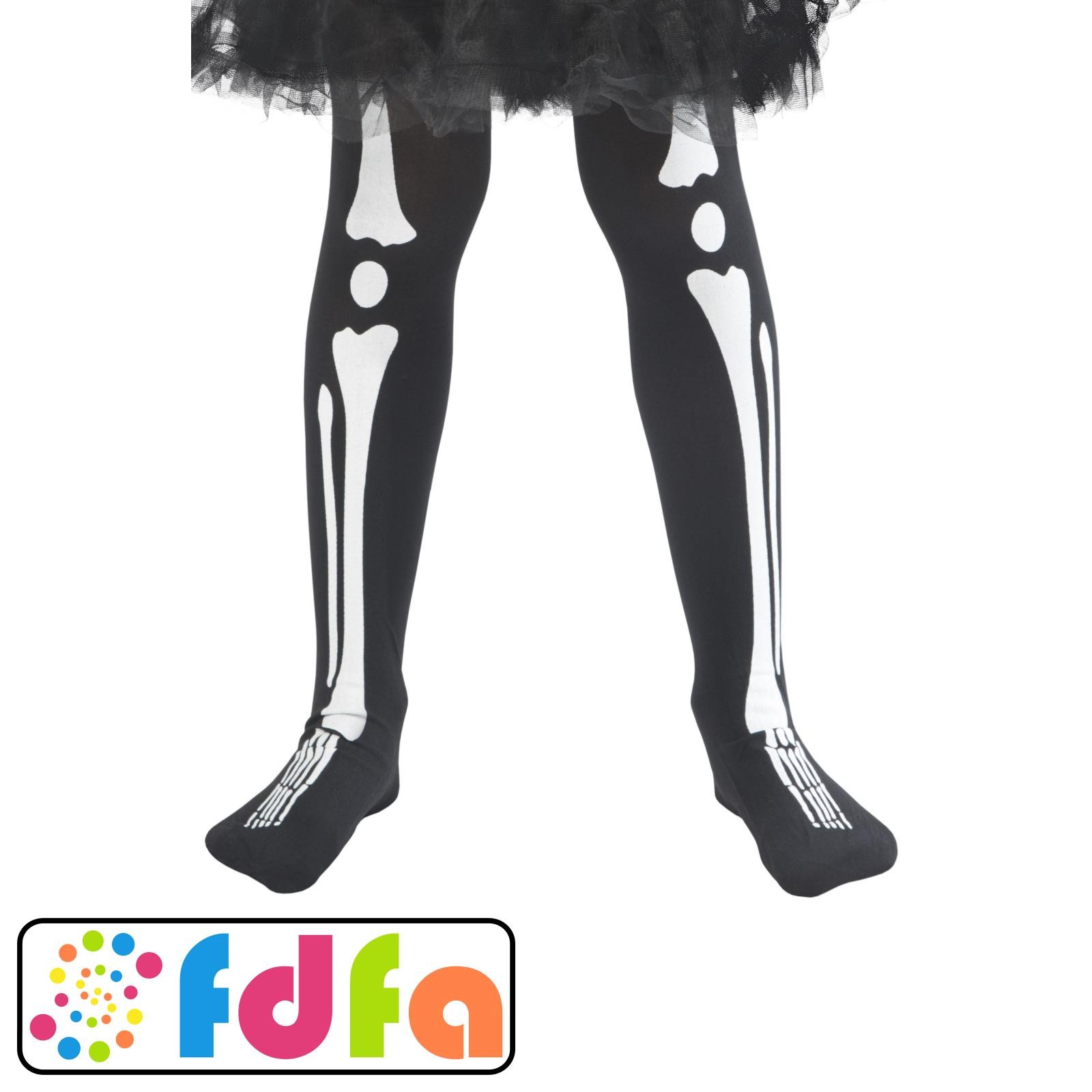 Smiffys Skeleton Tights Black Halloween Childs Fancy Dress Costume Accessory New