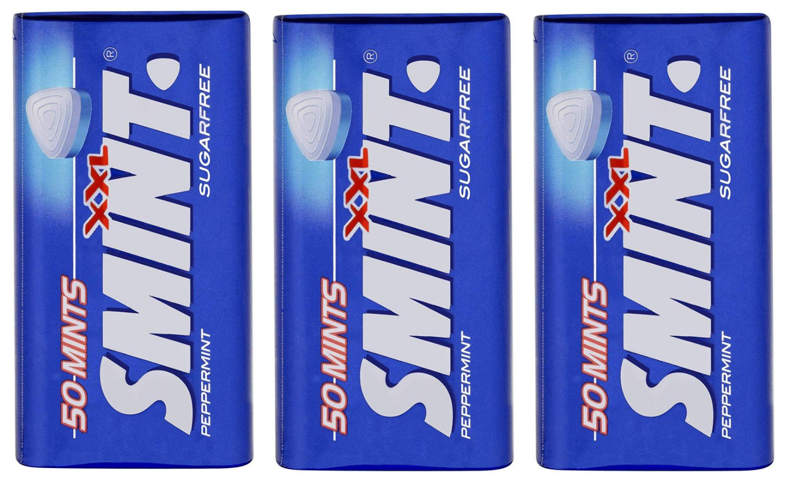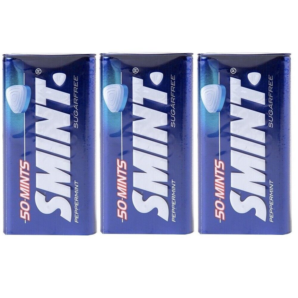 3 x SMINT Peppermint XXL Sugarfree for Fresh-breath - 3 x Metal pack of 50 mints