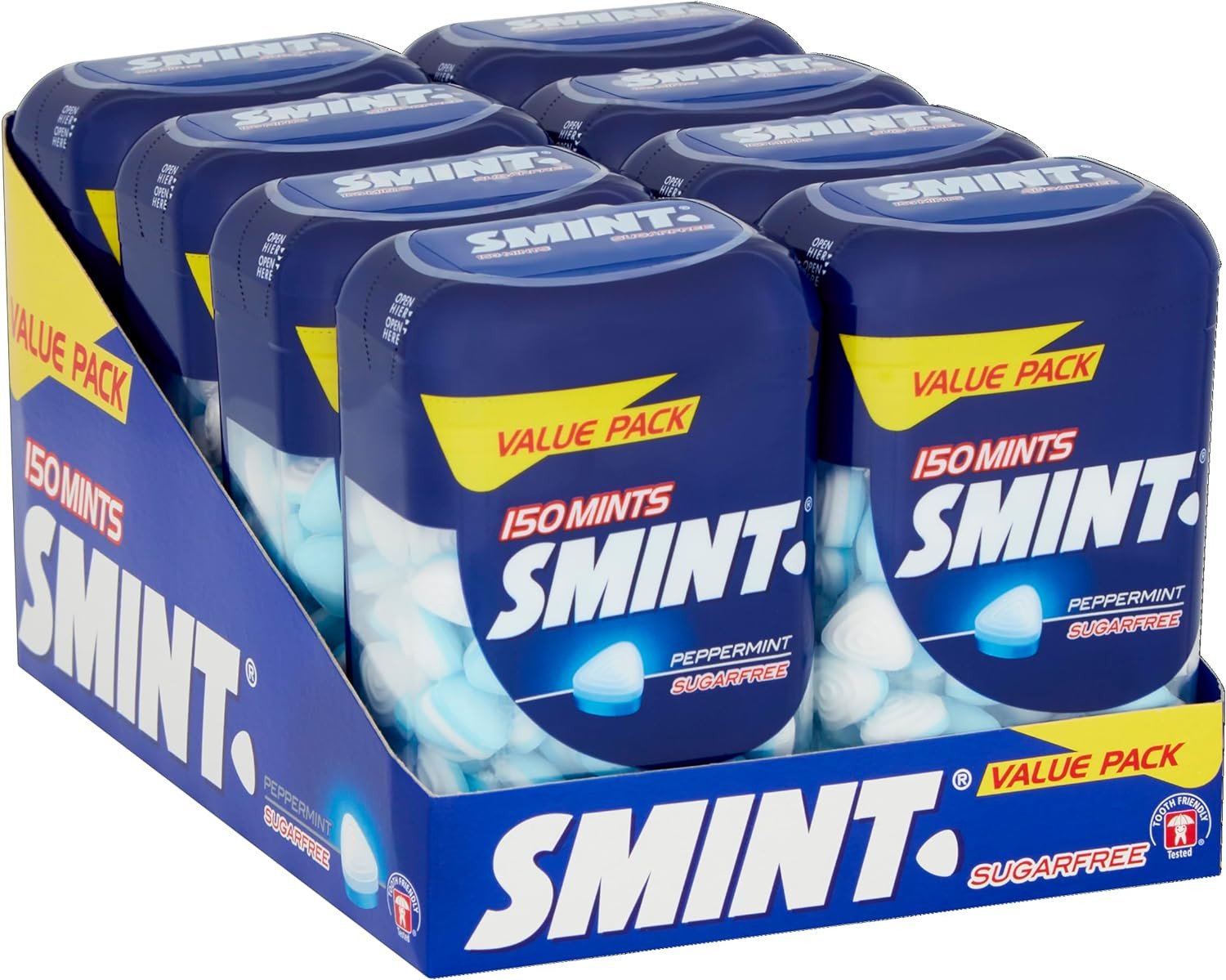 Smint Sugar Free Mints, Peppermint Flavour, Suitable for Vegetarians - 8 X 150 X