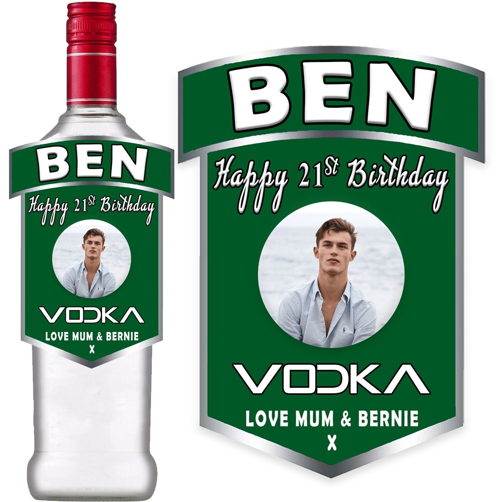 Photo Personalised Birthday Anniversary Green Bottle Label Smirnoff Vodka 70cl