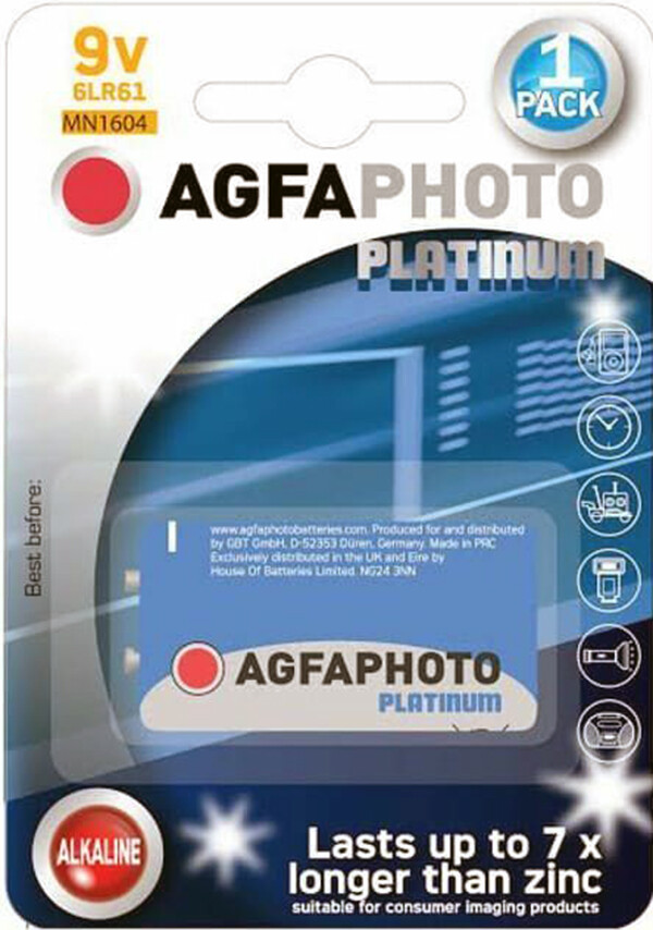 Agfa Photo 9V Platinum Power Alkaline Batteries Smoke Alarm LR22 MN1604 6LR61 UK