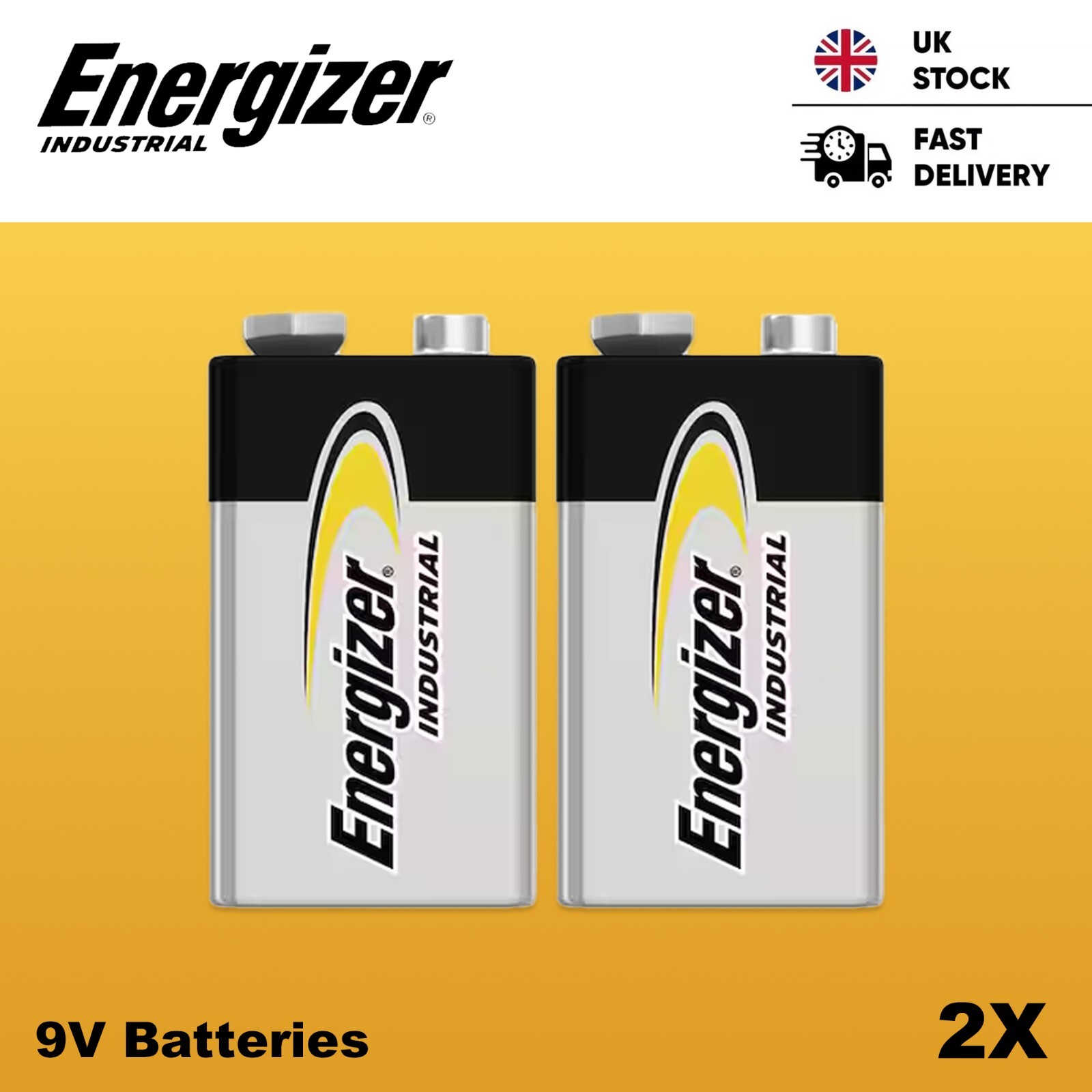 2 x Energizer 9V Industrial Alkaline Batteries PP3 Smoke Alarm LR22 MN1604 6LR61