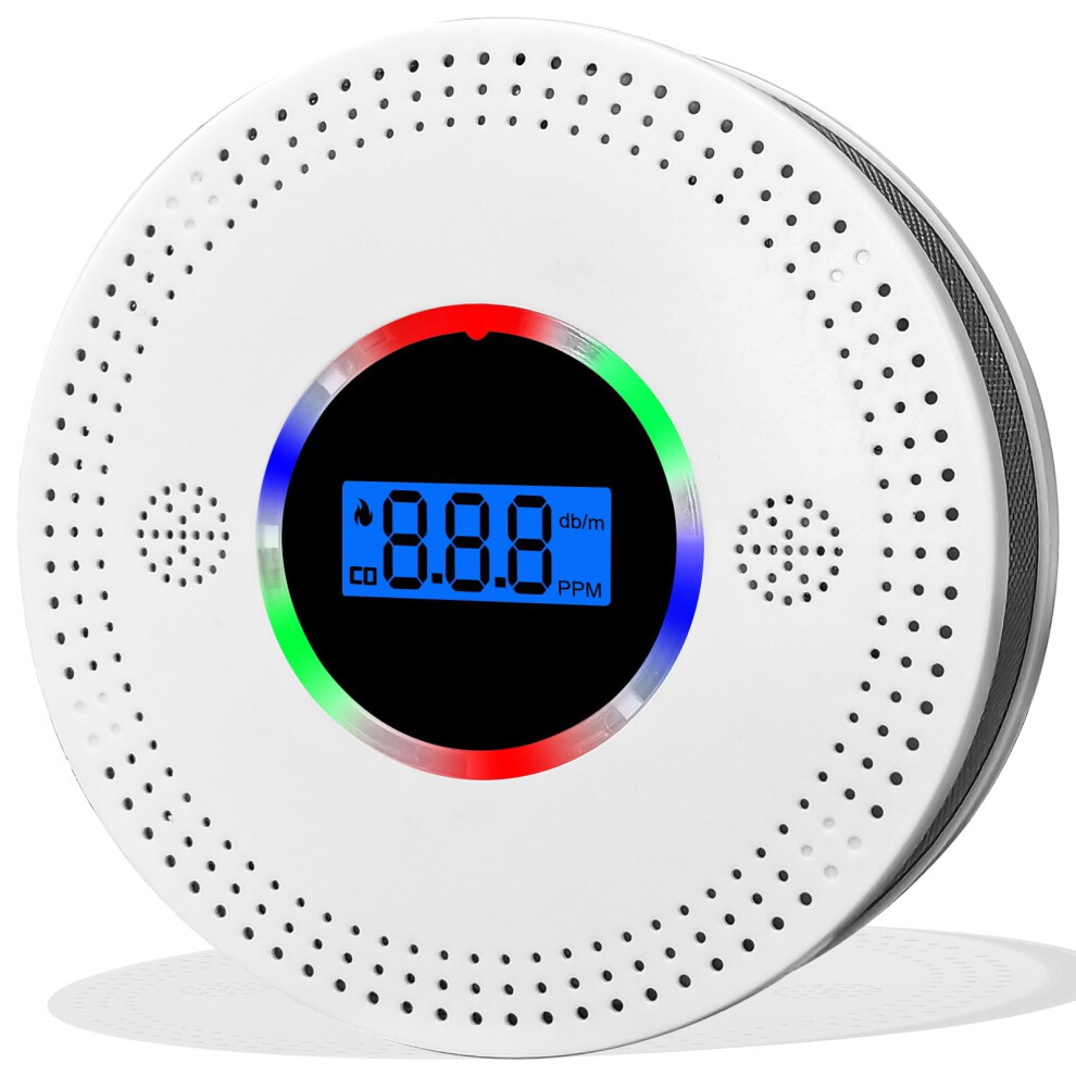 Smoke Alarm and Carbon Monoxide Detector, Smoke Alarm and CO Alarms Battery Powered with LCD Digital Display and Sound Alarm, EN 50291 CO Monitor for Home Safety