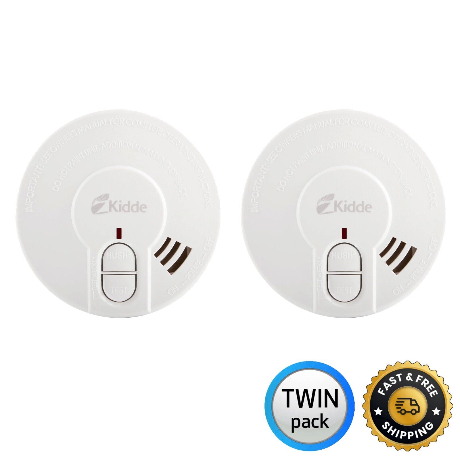 Kidde 29HD Optical Smoke Alarm With Test & Hush, Battery Included, Twin Pack