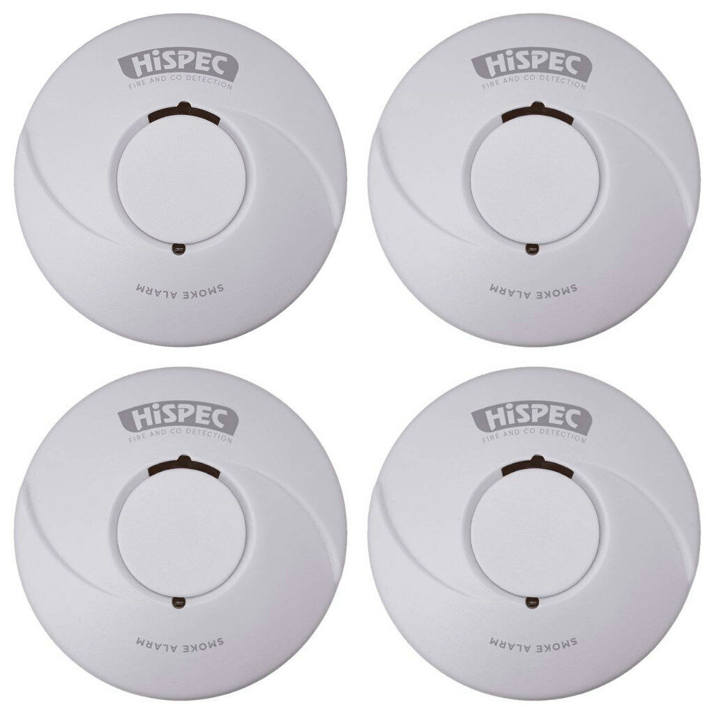 4 x Hispec HSA/BP/RF10-PRO Wireless Interlink Smoke Alarm Lithium Battery