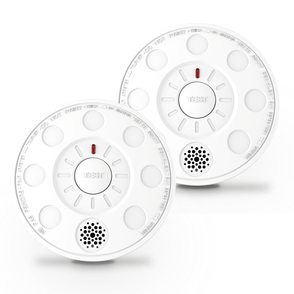 Smoke Alarm for Home, 2 Pack, Smoke Detectors with Test Silence Button Certified EN 14604:2005+AC:2008 Advanced 10 Year Optical Sensor, Low Battery W